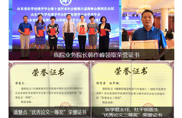 5月20日,山东医学伦理学会第十届学术年会在山东临沂沂水举行。济南红绘医院(山东红十字会医院)业务院长韩作峰出席本次学术年会。我院潘慧贞主任荣获本次学术年会优秀论文一等奖,张学君主任荣获优秀论文三等奖。